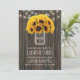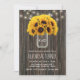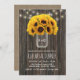 Rustic Sunflower Mason Jar & String Lights Barn Wood Wedding Rehearsal Dinner Invitations.