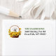 The left side of these return address labels feature an image of an adorable little white Bichon Frise dog sitting in a wicker basket full of bright gold sunflowers. Your custom text is in green and black at the right. Colourful and cute!