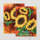Happy Birthday Card with Beautiful Three Sunflowers MIGNED Painting Design - or Add Your Text / Name