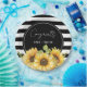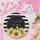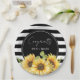Sunflower Black and White Stripes Wedding Shower Paper Plate