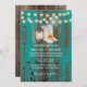 Rustic Sunflower Boots & Lantern Teal Barn Wood Western Wedding Invitations.