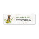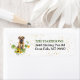 Le côté gauche de ces étiquettes d'adresse de retour présente une aquarelle d'un adorable chien de Border Terrier parmi des tournesols épars et des feuilles d'eucalyptus. Des confettis d'or subtil ajoutent de l'intérêt à l'arrière - plan. Votre texte personnalisé est en vert et gris foncé à droite.