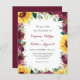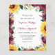These wedding invitations feature a watercolor floral border of sunflowers, burgundy roses and greenery foliage. Personalize them with your own text. These invitations are part of a collection which includes matching wedding stationery. Please visit our store to see the full range of items that you can personalize for your wedding.