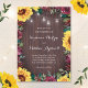 Sunflower Burgundy Rose Wood Jar Lights Wedding Invitation