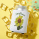 You can change the background colour and change the text on this can insulator sleeve. The image is derived from my original acrylic painting, Sunflower.