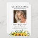 Invite friends and family to join you in celebrating the wonderful life of your loved one with this simple photo memorial service announcement with beautiful sunflower bouquet.