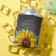 Fun sunflower chalkboard theme for this personalized can cooler wedding favour
