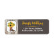 Ces étiquettes d'adresse de retour rustique coordonnent avec la collection d'invitation de douche nuptiale présentée ci-dessous et présentent un bouquet d'aquarelle de tournesols à l'intérieur d'une botte de cowboy marron sur le côté gauche. Sous la botte de cowboy, il y a une couverture blanche et brune en forme de ticket qui a un arrière - plan motif en bois derrière elle. Le côté droit de ce étiquette de adresse est coloré d'une couleur gris-brun avec le nom de l'adresse de retour et les détails en jaune doré et blanc avec un séparateur jaune décoratif entre. Utilisez ces étiquettes de adresse rustiques pour vos évènements mariages ou de douches nuptiales de style occidental, agricole ou à la grange.