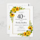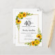 Jolie invitation tournesol jaune floral 40ème anniversaire. Les tourbières jaunes et les marguerites blanches se mêlent aux tournesols. Un cadre en or rectangulaire lui donne une ambiance élégante. Très facile à customiser. Le fond est doté d'un bouquet de tournesol. C'est parfait pour un anniversaire d'été. Cet article fait partie de la collection Jaune Sunflower White Daisy.