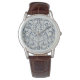 The watch looks really great! Very sharp and well done. The leather band is really nice, though for a man's watch I think it should be longer. Unfortunately, it isn't big enough for my husband's wrist but I will get a replacement because he is very excited to wear it!