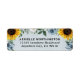 Design features a dusty blue/gray wood grain background with a cruath made of sunflowers, daisies, roses in dusty blue shades, baby's breath over various types of botanical color greenery elements.