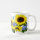 De beaux tournesols aux petits papillons bleus et aux fleurs bleues d'hortensias, si gaies et excitantes, confectionnent une tasse qui égaye le plus triste des jours !