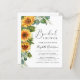 This budget-friendly rustic bridal shower invitation features watercolor bouquets of cheerful sunflower florals and eucalyptus greenery and elegant calligraphy scripts.