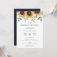 Rustic watercolor sunflower and eucalyptus floral arrangement, bridal shower invitation. Card features modern typography design style template and navy blue colour backing.