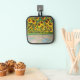 I ordered this product for my Mom as a gift and to check the product quality. It is a good thickness and great quality I am happy to report. She also advised that it will do a wonderful job in protecting her counters from hot pots and will last a really long time- durable. Printing is as expected and color is exactly her color of orange.
