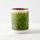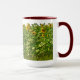 A SUNFLOWER FIELD ADORNS THIS COFFEE MUG.