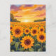 Sunflower Field Sunset Landscape Painting Postcard