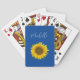 Yellow sunflower playing cards with a floral botanical theme on a dark blue background. With elegant white typography lettering, you can personalize with your own information. A fun and unique gift for that someone special.