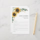 Sunflower Floral Bridal Shower Advice Card