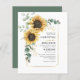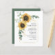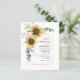 Create a modern Sunflower Floral Budget Wedding invitation card with this cute template featuring beautiful rustic floral bouquet, geometric gold effect frame, with modern simple typography.