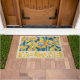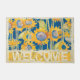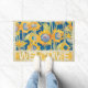 It's a garden of yellow sunflowers on a vibrant blue background decorating this welcome mat. This design features a garden of yellow sunflowers on a blue background. Below is the word welcome which may be left as is or changed to a monogrammed name. Designed by world renowned artist ©Tim Coffey.