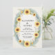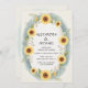 This elegant watercolor design features a soft blue oval wreath adorned with hand-painted sunflowers, delicate greenery, and pastel florals. The warm yellow blooms create a romantic rustic feel inspired by countryside weddings and late-summer celebrations. With graceful typography and a balanced floral composition, this design is perfect for couples seeking a timeless, nature-inspired wedding aesthetic that feels both charming and refined.