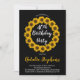 Sunny sunflowers wreath and pattern golden yellow, black and white birthday party invitations. Shown here for a 40th birthday, the invitation can be personalized for any age. Original design by Holiday Hearts Designs (all rights reserved).