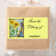 Original watercolor painting by Sandra Gale of a sunflower garden with the gardener's hat, shovel, bag and seed packets nearby beneath an old birdhouse. Great design for all gardeners!