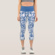 Capri leggings with a pattern of sunflowers and bunches of grapes on a blue background. An arts and crafts pattern originally designed by the British artist William Morris (1834-1896).