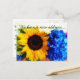 This postcard features a mixed media painting of a cheerful yellow sunflower and blue hydrangea flower. Personalize the front and back to let others know you've just moved to a new house or location.