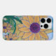 Sunflowers with polka dot centres adorn this iPhone case, a lovely work of mixed media art.