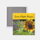 A bright and cheery sunflower magnet with an inspirational message of love hope and peace. Share it with a friend.