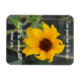 This fridge magnet features a photograph of a golden yellow sunflower and the saying "Turn your face to the sun and let the shadows fall behind you".