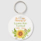 An beautiful Memorial key chain comprising of watercolor yellow floral sunflowers and the quote " In loving Memory". Makes a lovely celebration of life keepsake or to hand out at funerals and wakes . Personalize with a name and dates. Quote can be amended if needed .