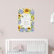 WELCOME SIGN with elegant script typography, "Mommy-to-Bee" Bumblebee Sunflower in Blue Hydrangeas for a baby girl's shower decor. Bumblebees with soft golden honeycomb pattern background. Sunflowers, daisies and crisp blue summer hydrangea flowers with bumblebees. Art painted in watercolor by internationally licensed artist and designer, Audrey Jeanne Roberts, copyright.