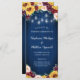 Sunflower Navy Blue Jar Lights Burgundy Wedding Program