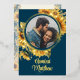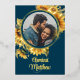 Elevate the beauty of your special day with our Sunflower Navy Blue Photo Wedding Gold Foil Invitation. This exquisite Navy blue wedding invite features elegant watercolor botanical foliage and gold foil accents, creating a chic and trendy look that will impress your guests. Incorporate your engagement photo or your favourite picture for a personal touch, and let the country rustic design add an elegant flair. Perfect for Spring, Summer, and Fall weddings. With its pretty calligraphy script and yellow wildflower greenery, this invitation is perfect for a sunflower wedding theme that is both gorgeous and elegant.