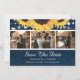 Personalized rustic navy blue and sunflower wedding photo save the date cards. Easily personalize this rustic photo save the date with your images and wedding details including a wedding website.