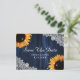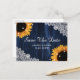 Sunflower Navy Blue Wood Lace Rustic Save The Date Postcard