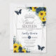 Sunflower Navy Floral Butterflies Silver Sweet 16 Invitation
