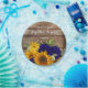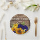 Sunflower & Navy Roses Wedding Party Plates. Rustic weddings rejoice! Our sunflower and roses customizable plates are a great way to showcase your day! Featuring a rustic wood plank background with yellow sunflowers and navy roses. Text is customizable for your party.