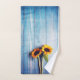 Transformez votre salle de bain en une retraite sereine avec cette belle serviette de bain avec une paire de tournesols jaunes dorés et un arrière - plan en bois bleu richement vieilli. Le design floral dynamique apporte une touche joyeuse et rafraîchissante, tandis que la texture rustique du grain de bois ajoute un charme confortable et ferme. Cet ensemble coordonné comprend une serviette de bain, une serviette et un linge de toilette, le tout conçu pour combiner fonctionnalité et beauté intemporelle. Parfait pour ajouter une touche de couleur à votre quotidien, cet ensemble sur le thème du tournesol est idéal pour tous ceux qui aiment la décoration d'inspiration nature avec une touche d'élégance rustique.