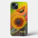 Mixed-media art with a beautiful sunflower and butterfly on a colourful abstract background. The name on the case is a template object and can be changed easily into any other name or text. It is possible to change the size and or the colour of the fonts. You even can chose a different font type.