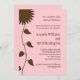 A modern and stylish offset sunflower balances the type on this dramatic invitation. It is perfect for the autumn wedding; yet the flower can easily be interpreted as a daisy for the spring or summer bride. This invitation is shown on the basic paper; however, I recommend the weight and texture of the linen paper.
