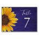 Sunflower on Rustic Navy Blue Wood Wedding Table Number