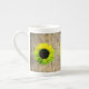 On this enchanting bone china mug are neon shades of green and yellow sunflowers on a rustic wood planks backdrop creating a country charm to spice up any kitchen decor.