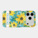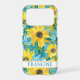 Customize this colourful modern sunflowers on teal painting iPhone 17 pro case with your your name in a trendy modern CAP font in teal on white. It's so beautiful and happy!