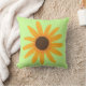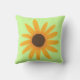 Painting of a sunflower with yellow orange petals and a rustic brown centre, printed on square pillows. The background colour can be customized.