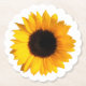 Pretty scalloped pulp board paper coasters, with a big yellow sunflower bloom on a white background. Great for anytime use and makes a nice gift idea.