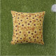 Pillow in a field of sunflowers pattern in shades of gold, yellows and browns